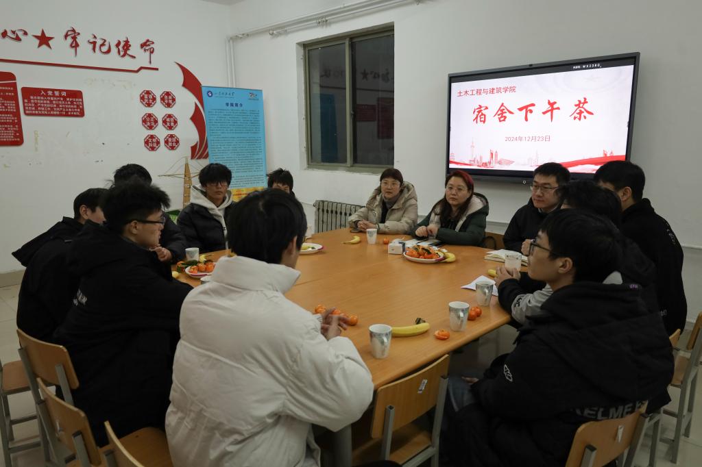 12月23日,校党委统战部副部长于娜做客beat365亚洲体育在线官网“宿舍下午茶”活动,并与对接的BIM爱好者协会成员进行了亲切交流。beat365亚洲体育在线官网党委副书记、副院长高静,学生工作办公室主任、团委书记王贝贝,团委辅导员老师董继先陪同参加。