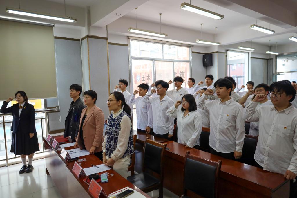 土木工程2024-6班于文杰作为新团员代表,带领全体新团员庄严宣誓。“我志愿加入中国共产主义青年团……”铿锵有力的誓言在会场回荡,彰显着新团员为共产主义事业奋斗的坚定决心。随后,于文杰分享了自己对团员责任的理解,表示将以实际行动践行入团誓言。