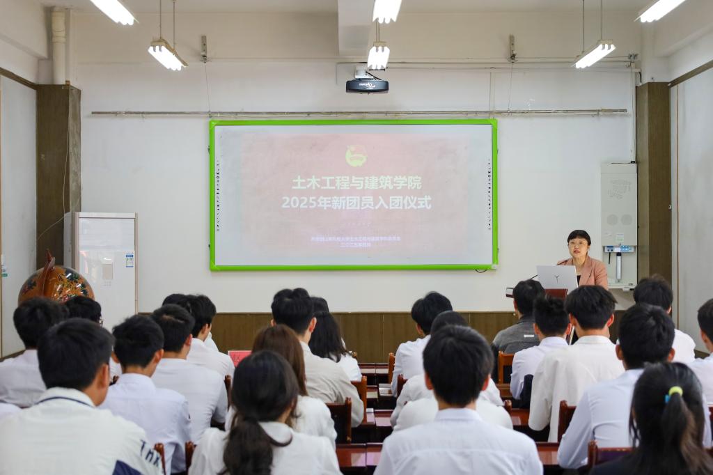 4月28日,为进一步加强共青团队伍建设,引导青年学子坚定理想信念,传承红色基因,增强新时代青年的责任感与使命感,beat365亚洲体育在线官网于J15-201教室举行2025上半年新发展团员入团仪式,beat365亚洲体育在线官网党委副书记、副院长高静,团委辅导员老师史卫平、张方源、董继先、赵珂,优秀团员代表、全体新团员参加。仪式由张方源主持。