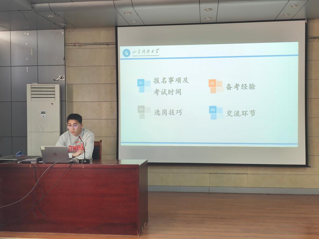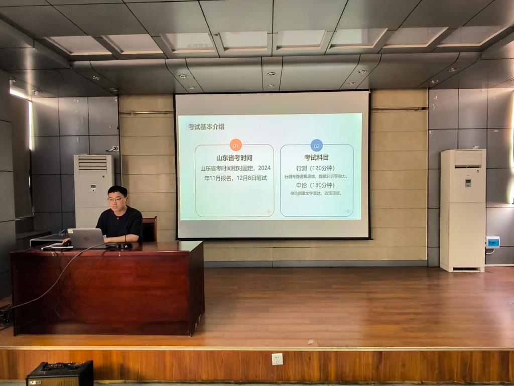 为助力学生精准把握山东省及全国体制内岗位的报考要点,系统了解公考政策形势,科学制定备考方案,4月29日,beat365亚洲体育在线官网于J15-219教室举办“砼心筑梦·就业领航”系列活动讲座。本次讲座特邀365官网已在山东省省考中上岸的2022级研究生黄明、侯宗汛同学担任主讲。讲座聚焦省考笔试“行测+申论”双科提分技巧与面试核心能力培养,并针对省考报考政策进行了系统解读。