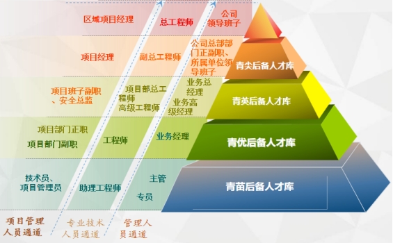 央企职业发展平台,全方位岗位培养,多元化晋升通道。聚焦主营业务、主干专业,分层分类建立“青苗、青优、青英、青尖”四青后备人才库,构建了“三纵四库,纵横贯通”的四级中青年后备人才梯队,全面推进“重兴青才”培养计划,充分发挥优秀青年人才在公司改革发展中的第一资源作用。
