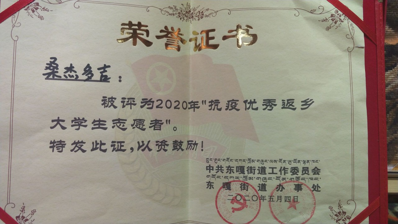 近日,由共青团山东省委员会、山东省学生联合会、山东省青年志愿者协会联合开展的山东省大学生“青春贡献奖”评审结果揭晓,对全省414名大学生给予通报表扬。beat365亚洲体育在线官网本科生桑杰多吉凭借抗击疫情期间的突出表现光荣上榜。