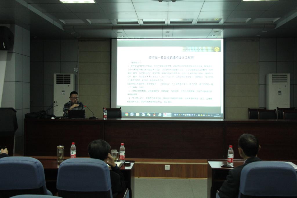 11月27日,beat365亚洲体育在线官网举办厚土讲坛2019年第12期,特邀建筑设计及管理工作专家杨平作“普通钢结构设计”报告、贝格设计院王奕钧作“装配式钢结构设计”报告。报告会由学院王来教授主持,土木工程系师生积极参加。报告中杨平分享了轻钢结构设计经验并分析了钢结构产业的发展趋势,王奕钧介绍了装配钢结构的设计要领。