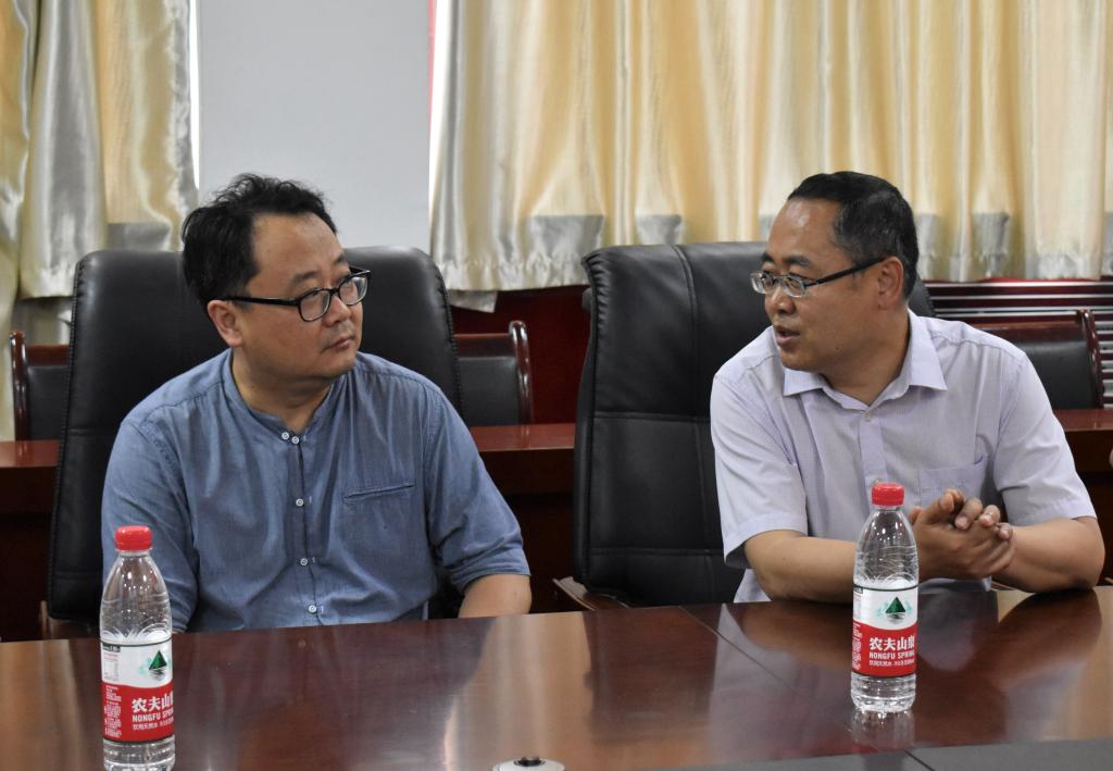 王崇革对杨万庆一行的到来表示热烈欢迎,从办学历史、人才培养、专业建设及学科发展等方面介绍了学院情况,杨万庆介绍了武汉理工大学出版社的发展历程及特色优势,双方希望通过此次交流能进一步加强沟通与协作,在教育教学研究、教材专著出版等方面进一步深入合作。