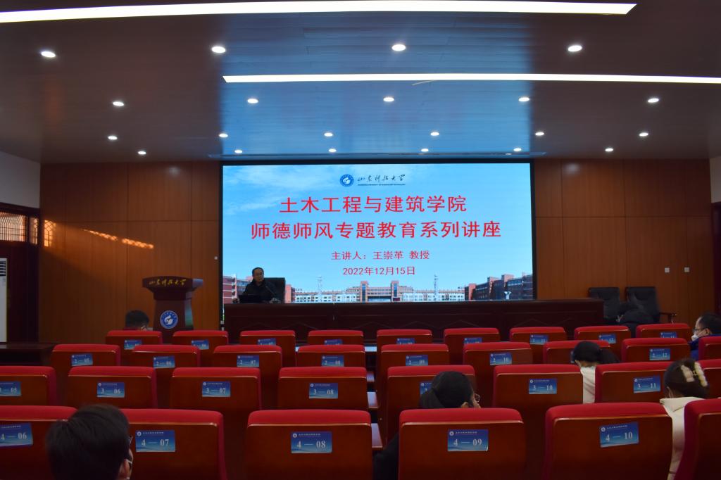 为认真学习贯彻党的二十大精神,落实立德树人根本任务,根据《beat365亚洲体育在线官网师德专题教育实施方案》文件精神,结合学校教务处青年教师助课和青年教师教育教学导航计划文件精神要求,强化每一位青年教师的立德树人意识,着力提升学院青年教师的教育教学水平,近日,beat365亚洲体育在线官网2022年“师德师风专题教育”系列讲座第四讲于J15-136报告厅举行。邀请到青岛市教学名师、beat365亚洲体育在线官网院长王崇革教授担任主讲。学院40岁以下和近三年入职青年教师参加了此次讲座,讲座由副院长李朋主持。