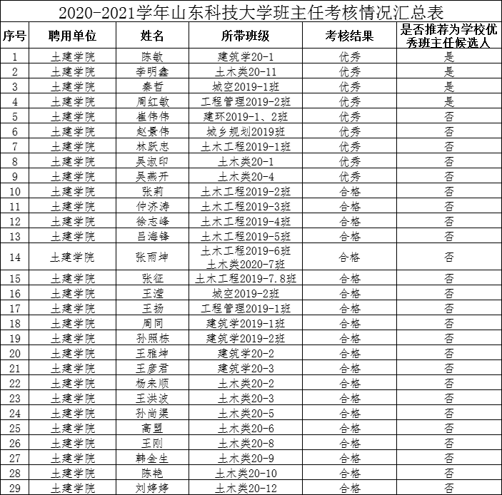 根据《关于做好2020-2021学年班主任考核及评优工作的通知》精神,365官网开展了2020-2021学年班主任考核及评优工作,经过个人自评、学生测评、学院综评等工作程序,确定林跃忠等9人考核结果为优秀,并从中评选出陈敏等4人作为优秀班主任推荐人选;现将人员名单及相关材料进行公示,公示时间为9月3日~5日。