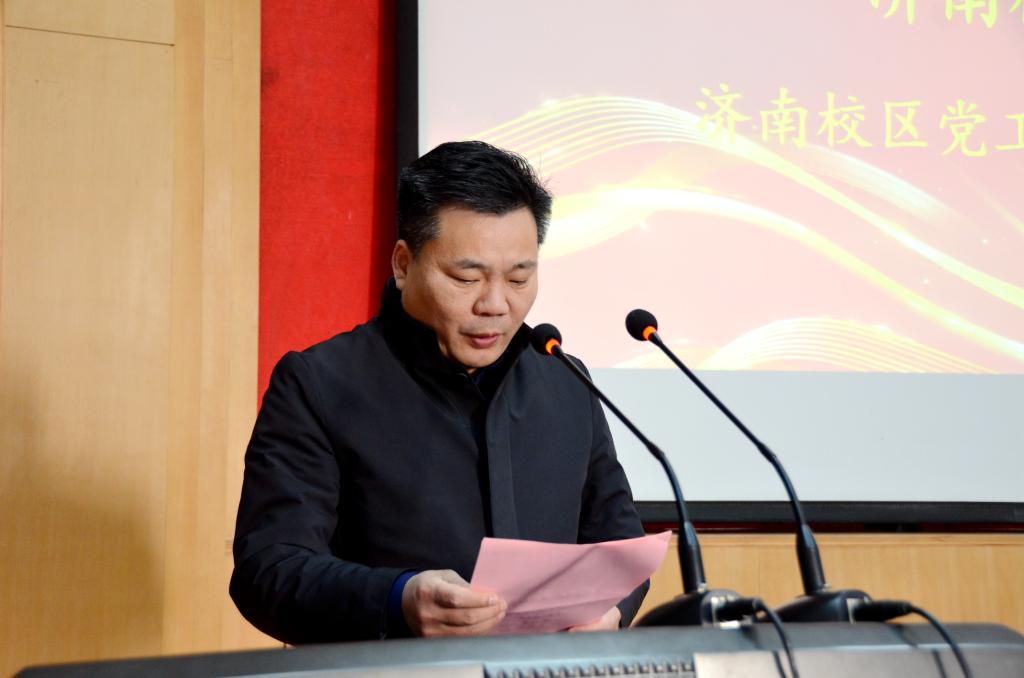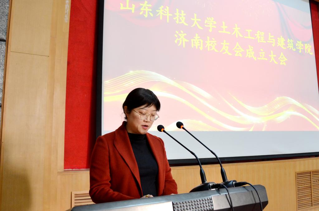 单德勇向大会汇报校友会筹备情况 济南校区党工委副书记贾长响宣读《beat365亚洲体育在线官网济南校友会章程》