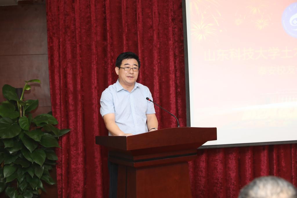 杨佑灵在致辞中,回顾了自己40多年前在山东矿业学院土木工程系的学习和工作经历。他指出,校友们一要珍惜这片家园,努力把它做大、做强、做好,让更多的校友融入到这片家园,共同构建良好的情感共同体;二要守护好这片家园,努力打造校友(家人)发展共同体;三要建设好这片家园,发动广大校友继续关注和支持母校、母院的发展,加强协同创新,实现合作共赢,为母校70岁生日献礼!