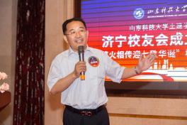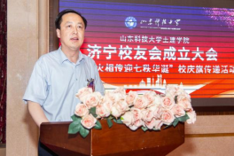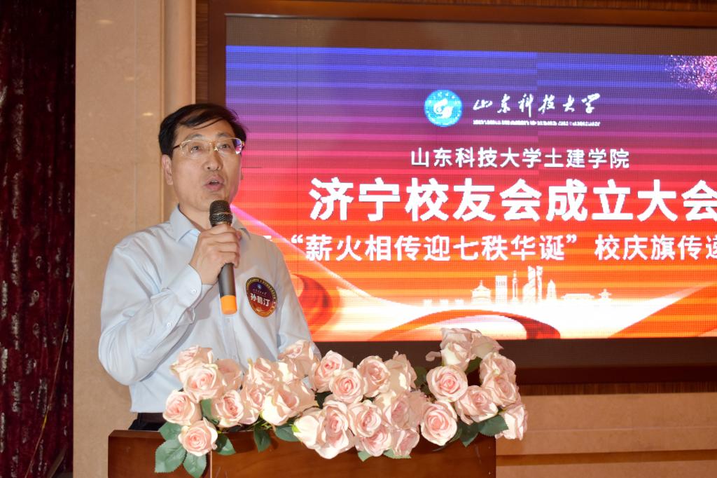 孙鹤汀代表学校对beat365亚洲体育在线官网济宁校友会的成立表示热烈祝贺,他回顾了学校与校友工作的发展历史,与校友们分享了学校近年来取得的成绩和“一家人一家亲,守望相助,共荣共进”的校友工作理念,他强调,校友会是联系学校和校友的情感纽带和交流平台,希望校友会建成加强联系,促进交流,增进友情,共享互助,促进校友事业发展,襄助母校事业发展的平台。他强调,母校70华诞是37万海内外校友共同的节日,校庆旗传递是校庆系列活动之一,校庆旗在山东省内各校友会及全球范围内各校友会进行接力传递。希望广大校友积极参与校庆活动,更好传承学校文化,凝聚校友力量,扩大社会影响,并诚邀广大校友回母校同襄盛会,畅叙友情。