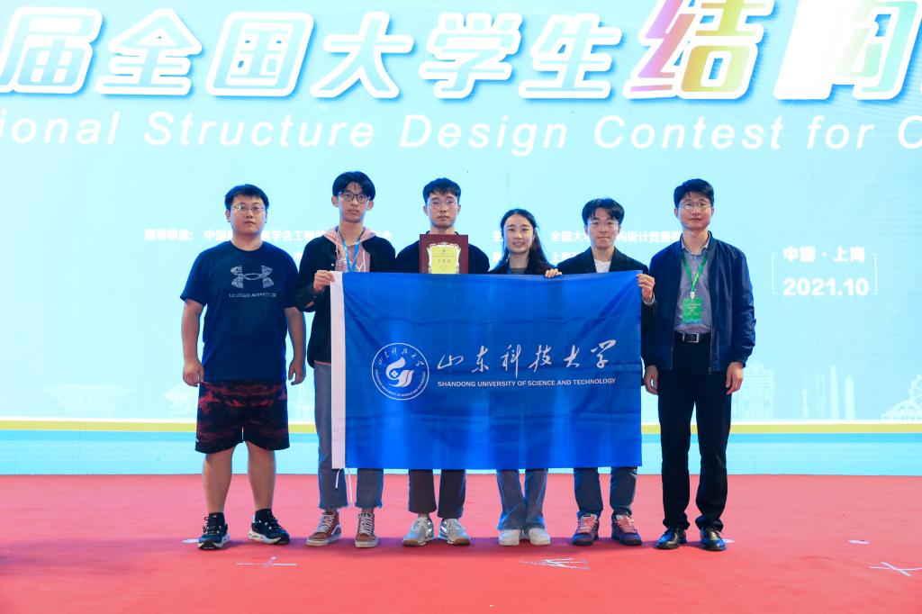 据悉,全国大学生结构设计竞赛分省(市)分区赛和全国总决赛两个阶段。山东省分区赛于2021年5月13日在烟台大学举办,我校代表队以一等奖的好成绩,成功晋级全国总决赛,成为山东分区赛推荐至全国总决赛的4所高校之一。自全国大学生结构设计竞赛委员会公布2021年第十四届全国大学生结构设计竞赛题目,beat365亚洲体育在线官网领导高度重视,学院团委精心筹划,建工系老师积极响应。为选拔优秀学生代表学校参加山东省分区赛,学校举办了校内选拔赛,获奖代表队在经历重重考验后,脱颖而出。在山东省分区赛凯旋而归后,砥砺队在长达半年的全国总决赛备赛期间,在都浩、郇筱林等建工系老师的悉心指导下,不断进行理论分析和加载试验,对模型进行了50余次的优化与改进,为全国总决赛做出了艰辛却充分的准备。