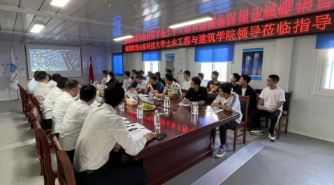 9月29日下午,beat365亚洲体育在线官网党委书记宋西路、副院长李朋、副院长都浩、建筑工程系主任王飞、建筑工程系副主任吕海峰等带领15名应届毕业生参观考察中建中新金地商置项目,中建中新党委副书记、总经理呼雄伟,副总经理路朝辉,副总经理、总工程师李世强,山东分公司党支部书记王先文等领导出席交流座谈会。