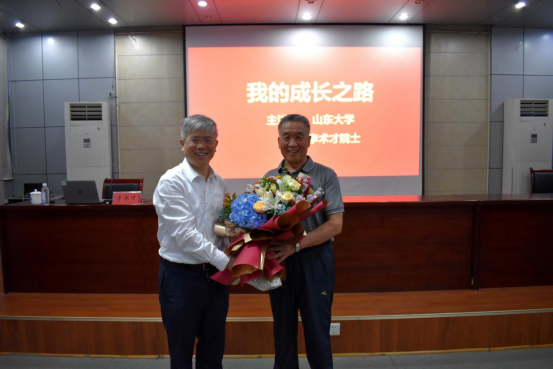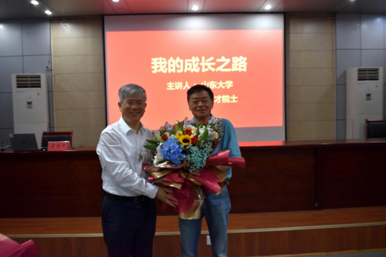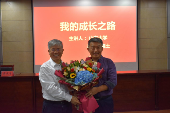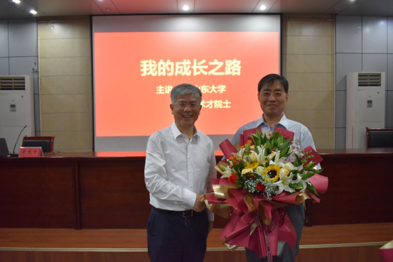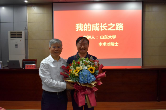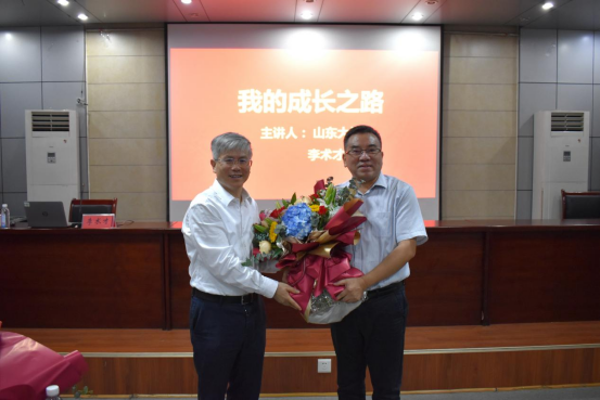 立德树人不忘初心,尊师重教薪火相传。讲座伊始,李术才院士专门准备了献花环节,并亲手为恩师们奉上精心准备的鲜花,表达了对恩师们谆谆教诲和辛勤付出的感激之情。学院老教师们在惊喜之余感动不已,老教师代表姜云臣、王渭明、吕爱钟、王来等饱含感情的讲述了李术才院士求学路上的优秀事迹和逸闻趣事,浓浓的师生情充满了整个会场、感染了在座师生。