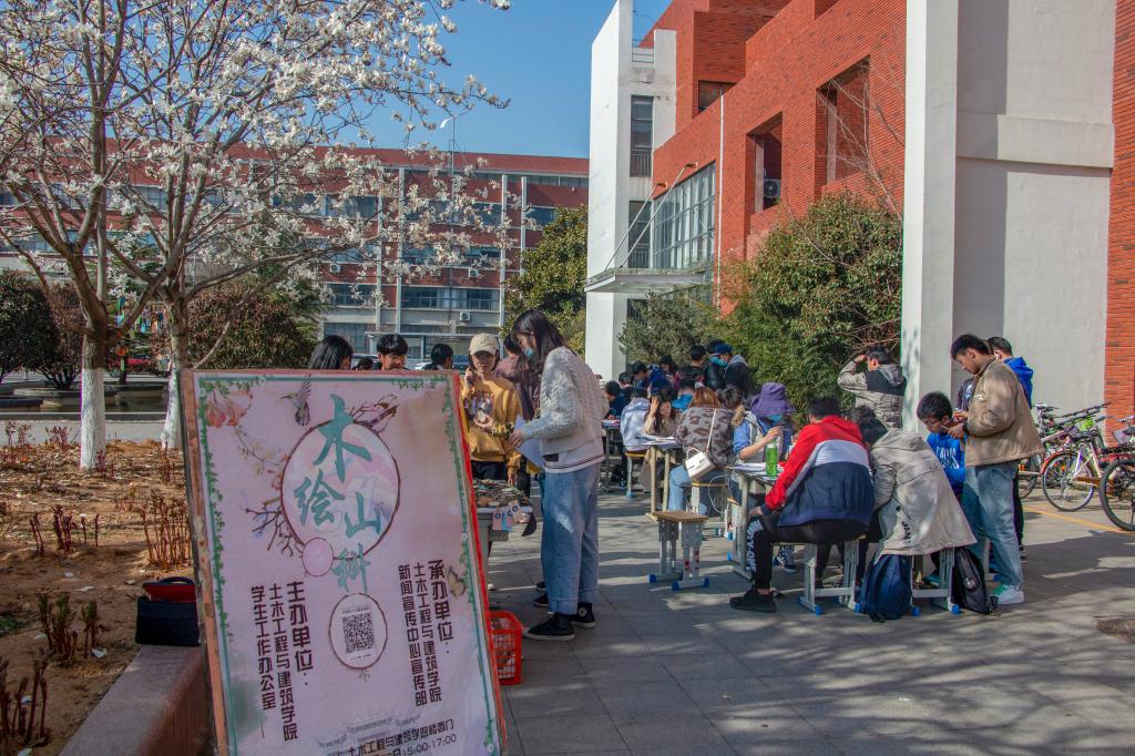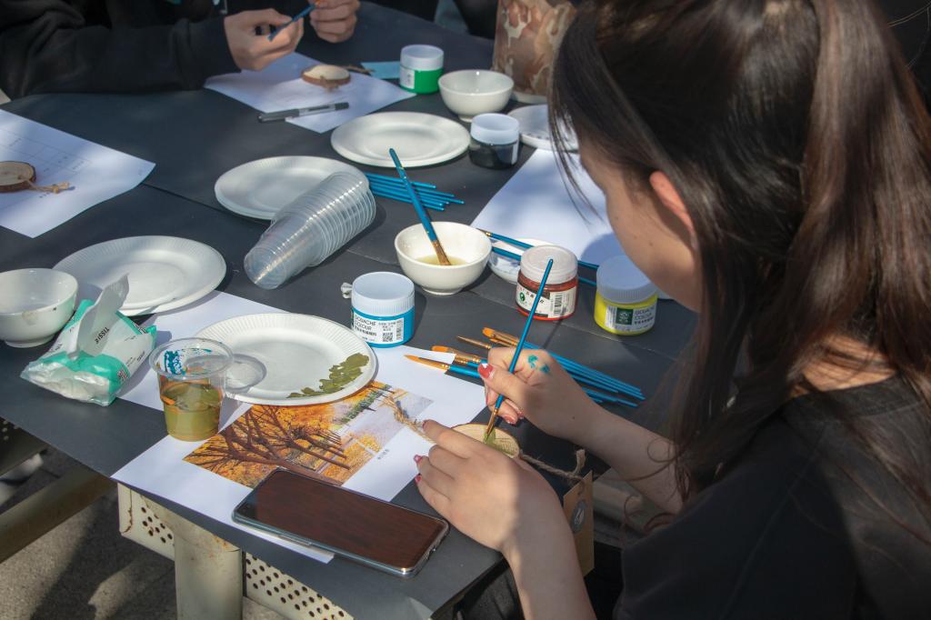 学生们围绕“科大”这个中心,挖掘校园之美,在原木片上手绘作品,并写下对学校的祝福。墨水荷香、校园春色、科大金秋、水中银杏等跃然木上,励志坊、1号教学楼等纷纷成为笔下美景。学院新闻宣传中心部长陈涵说:“同学们对活动的喜爱程度超过我们的预期,不少路过的、之前没有报名的同学也都过来咨询是否可以加入。原本计划2个小时的活动,天快黑了才结束。”活动中,学工办辅导员们也纷纷加入,手绘出印象科大。